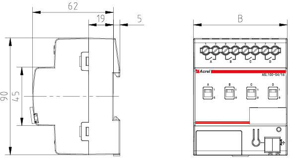 | 產(chǎn)品型號 | 模塊寬度(B)mm | 回路數(shù) |