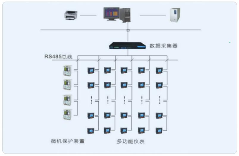 系統(tǒng)采用Acrel-2000型電力監(jiān)控系統(tǒng),分別在東西區(qū)各設(shè)置一套電力監(jiān)控系統(tǒng),實現(xiàn)對萬聯(lián)城東西區(qū)高低壓配電回路的實時監(jiān)控,有利于用電管理。另一方面,電力監(jiān)控系統(tǒng)不僅能夠準(zhǔn)確的表示出回路的用電狀況,它還具備網(wǎng)絡(luò)通訊等功能,能夠與計算機、串口服務(wù)器等設(shè)備進行組合,從而實現(xiàn)遠程監(jiān)控。